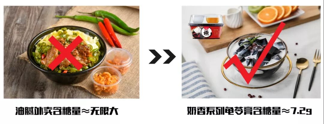 外卖已经太油腻,含糖量超标!单吃蔬菜也觉得不能满足口腹之欲。龟苓君最近有了新选择:生和堂奶香龟苓膏。另外还有燕麦,红豆,绿豆等口味选择。拥有丰富膳食纤维的同时龟苓膏含糖量只有3.6g/100g,营养的低糖饱腹午餐也是轻松解决!