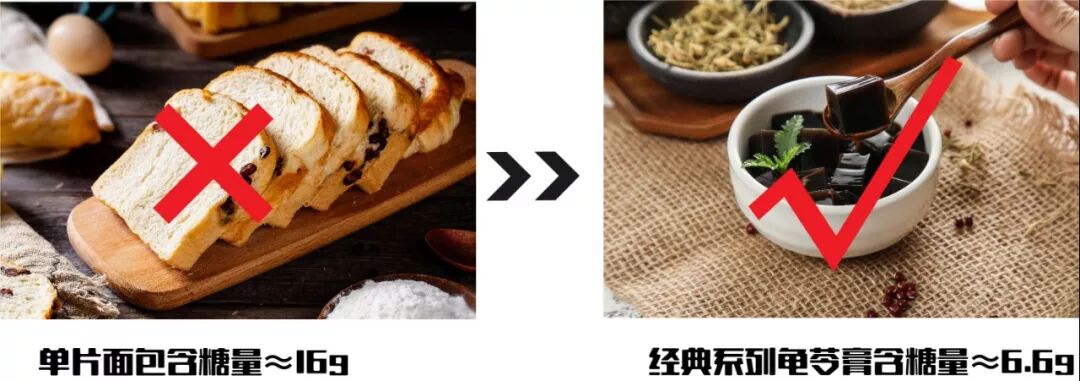 通常龟苓君的早餐,是一瓶牛奶加一袋面包。正常纯牛奶含糖量约为5g,但是烘焙类的单片面包大约已经达到16g的糖,(通常龟苓君还不止吃一片,而是吃一袋呢)。于是机智的我把烘焙面包,换成了生和堂经典龟苓膏。经典系列龟苓膏糖版本,含糖量只有3.3g/100g。一顿充满活力的早餐下来,工作也倍有劲~